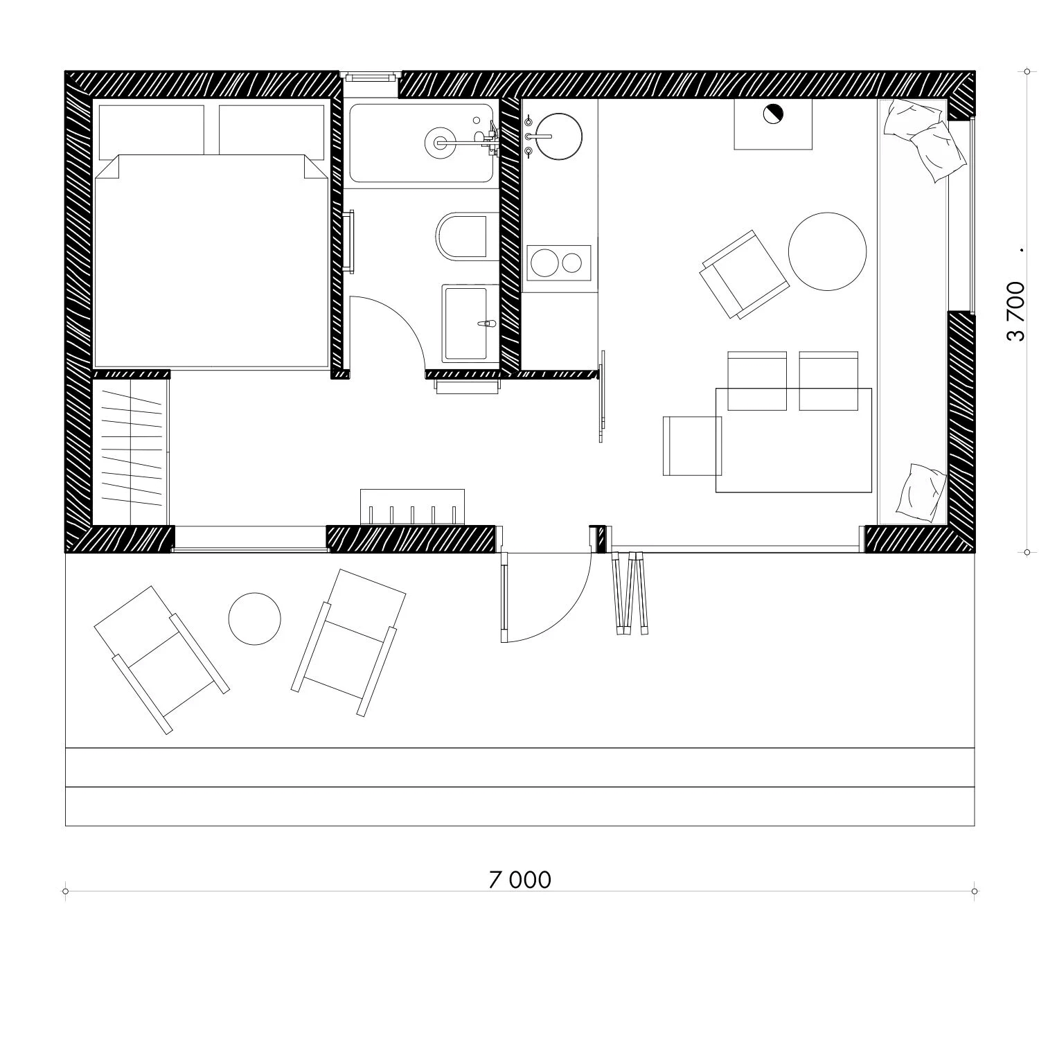 El cliente prepara la parcela por su cuenta. Recomendamos el uso de cimientos de pilotes helicoidales para una instalación óptima